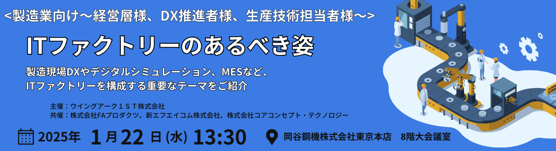 製造現場DXやデジタルシミュレーション、MESなど、ITファクトリーを構成する重要なテーマをご紹介