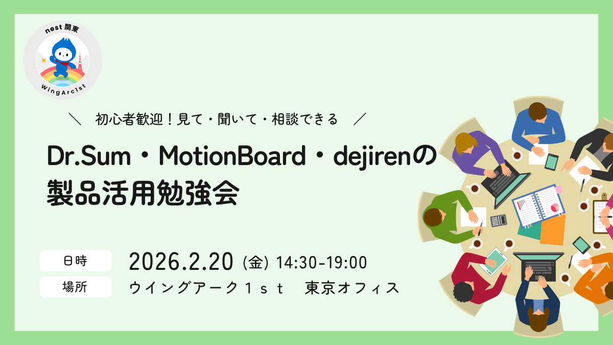- 【nest関東】初心者歓迎 見て・聞いて・相談できる Dr.Sum・MotionBoard・dejirenの製品活用勉強会